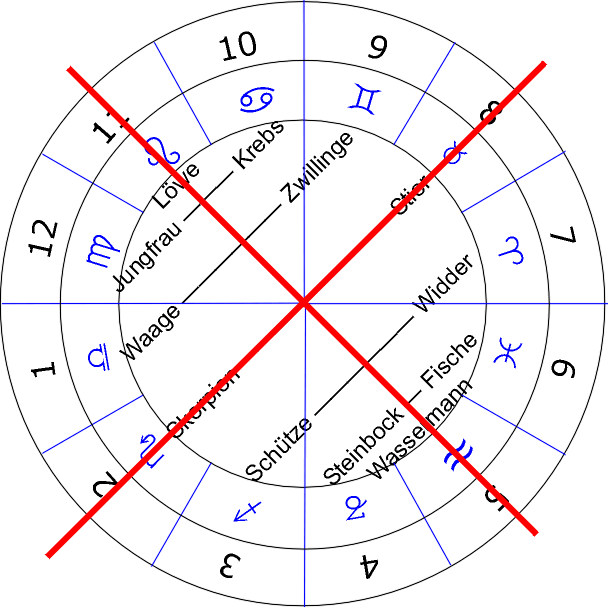 „Aus diesen Zahlbeziehungen unter den Zeichen geht hervor, dass durch die Linie Löwe — Wassermann der Tierkreis in zwei Hälften geteilt wird." (S. 33)